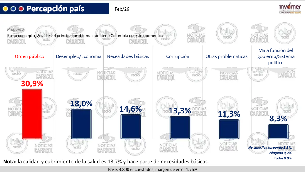 Aunque mucho análisis se podría hacer sobre las derrotas de dichos procesos, solucionaban problemas de los colombianos, pero no el que más los afecta. Según la encuesta de INVAMER publicada en febrero de 2026, el 30% de los colombianos cree que el mayor problema del país es la seguridad. Adicionalmente, afirma que 3 de cada 10 colombianos no se sienten seguros en su barrio, vereda o sector de residencia. El miedo dejó de ser una percepción aislada y se convirtió en experiencia cotidiana.