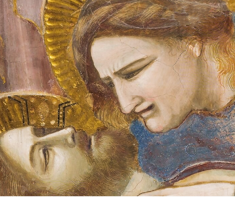 Miremos la cara de la Virgen en el mural de Giotto, Lamentación sobre Cristo muerto (Florencia, 1337). Su expresión es de una tristeza desgarrada; no obstante, su rostro está seco. Giotto evitó representar las lágrimas y utilizó, en su lugar, el recurso de la expresión facial. Este es también un recurso difícil de manejar, pues las expresiones de risa y de llanto suelen parecerse mucho.