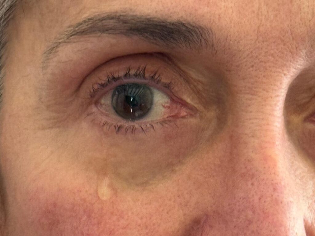 La lágrima tiene un volumen definido debido a la tensión superficial. En el borde del párpado, el líquido forma una curva cóncava que atrapa la luz de una manera específica. Si, en cambio, rueda por la mejilla, deja un rastro de humedad, que brilla distinto al resto del rostro. Es necesario hacer un cambio de color sumamente sutil.