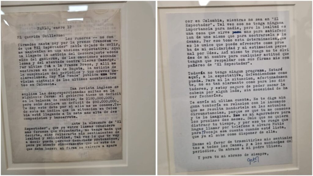 Las cartas de Gabo a don Guillermo Cano. Imagen tomada en la exposición “Todo se sabe: el cuento de la creación de Gabo”, de la Biblioteca Nacional.