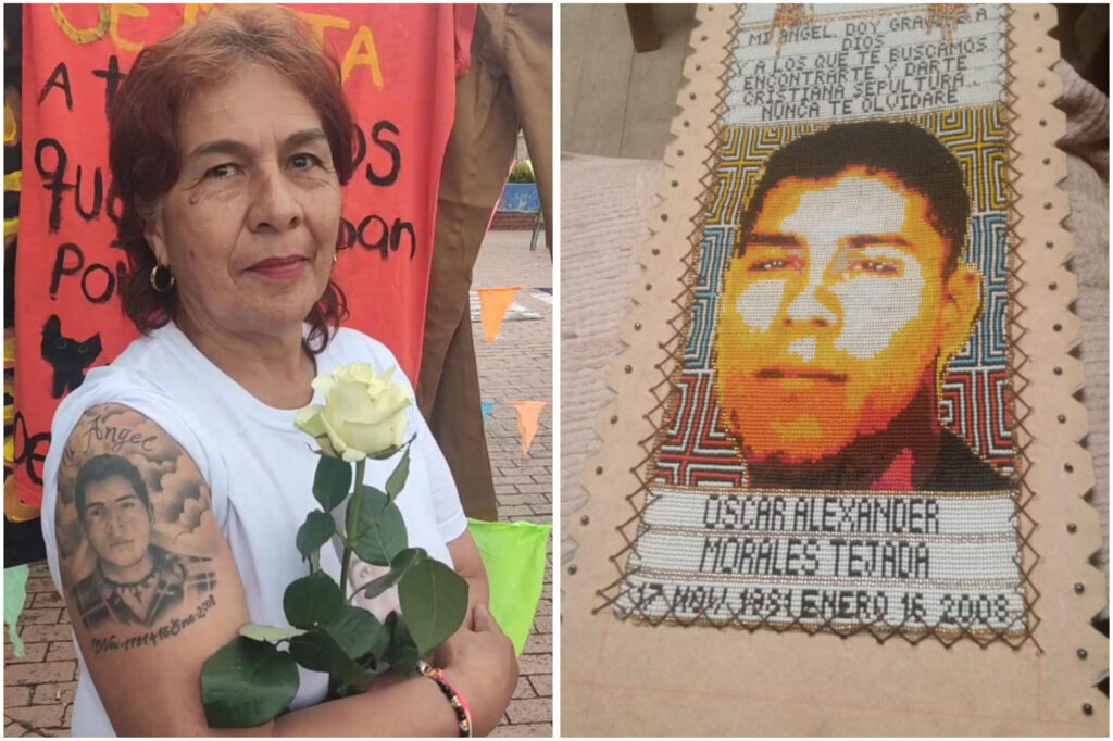Doris Tejada, bogotana y madre de Óscar Alexánder Morales Tejada, una de las víctimas de los mal llamados falsos positivos (ejecuciones extrajudiciales). Fue asesinado y desaparecido por el Ejército en enero de 2008. Tras 16 años de lucha ante el Estado, el cuerpo del joven fue recuperado en 2024. Ella sigue esperando que se haga justicia.