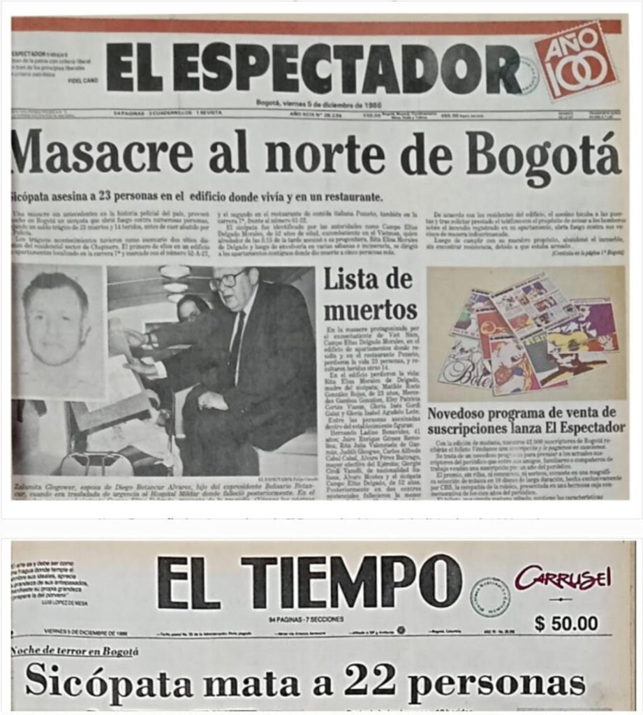 Lo que quiero decir es que en la historia sobre la masacre de Pozzetto no ha sido posible concebir una novela centrada única y exclusivamente en la figura de Campo Elías Delgado, el hombre que mató a 29 personas, incluida su madre, en la Bogotá de los años 80. Una Navidad negra para muchas familias, incluidos los sobrevivientes. Éramos adolescentes aquel 4 de diciembre de 1986.