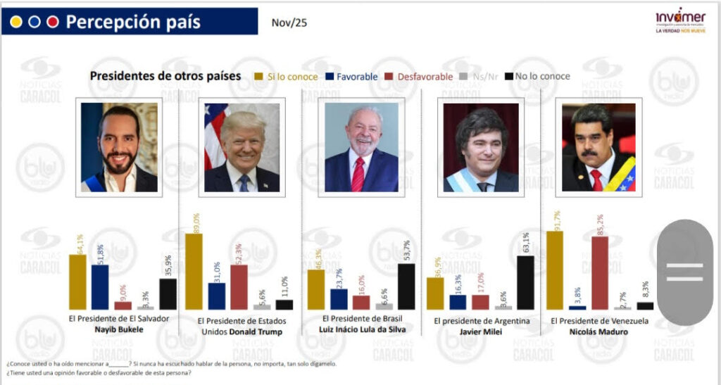 Hay que pensar en todo aquello que no dice la encuesta de Invamer, incluyendo esa pregunta novedosa sobre personajes foráneos. Para los colombianos encuestados, Nayib Bukele tiene mejor imagen (51,8%), que Donald Trump (31,0%). Solo este dato ya da mucho para pensar.