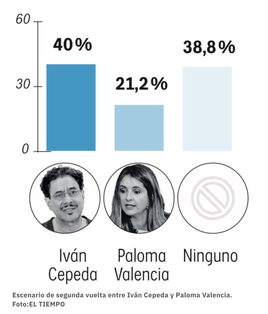 Sin embargo, en la encuesta de El Tiempo, son altos los porcentajes de quienes no votarían por ninguno de los tres candidatos con mayor intención de voto: El 26.7% de los encuestados no votaría ni por Cepeda, ni por De La Espriella. El 38,8% no votaría ni por Cepeda, ni por Valencia. El 35,9% no votaría ni por Cepeda ni por Fajardo.