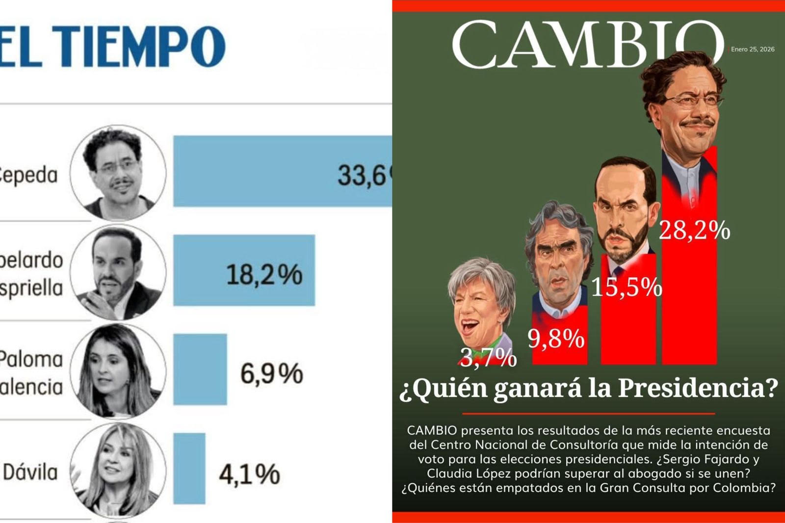 Lo curioso es que sumando a Fajardo y López en la encuesta de Cambio, los dos casi alcanzan a De La Espriella. Y sobra decir que sumando a los de la Gran Consulta, en cabeza de Paloma, entre todos superan a De La Espriella. Es decir, la disputa en adelante será “a muerte” por quién ocupará la segunda posición para enfrentar a Iván Cepeda en segunda vuelta.