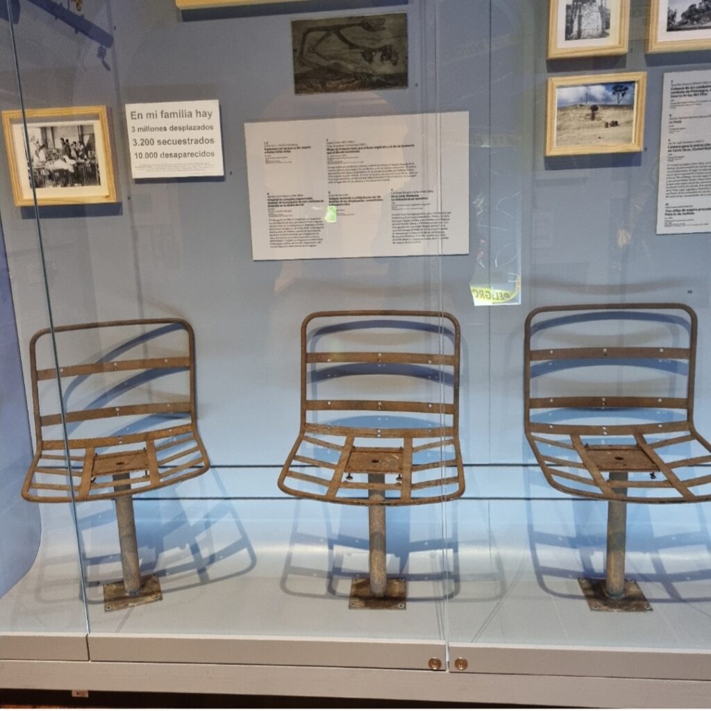 “Tres sillas de espera procedentes del Palacio de Justicia”. Pieza del Museo Nacional de Colombia.