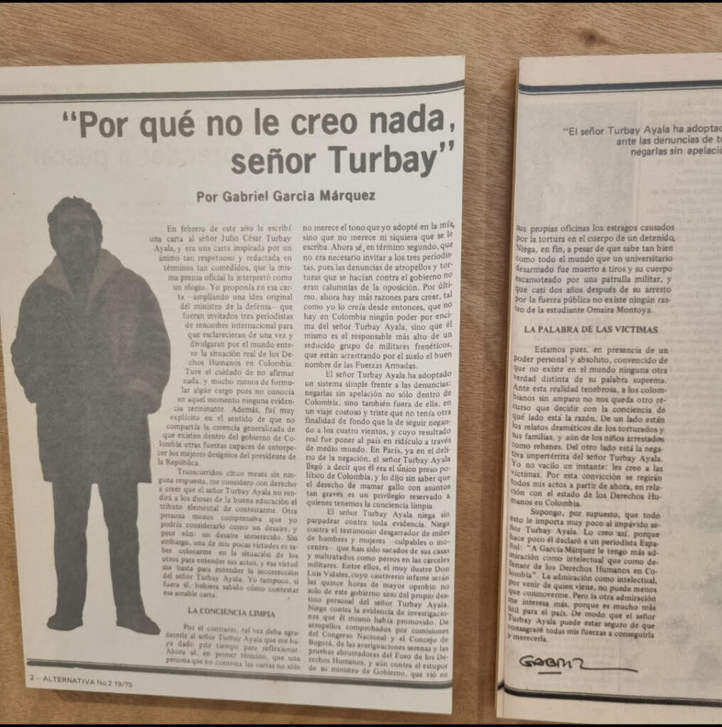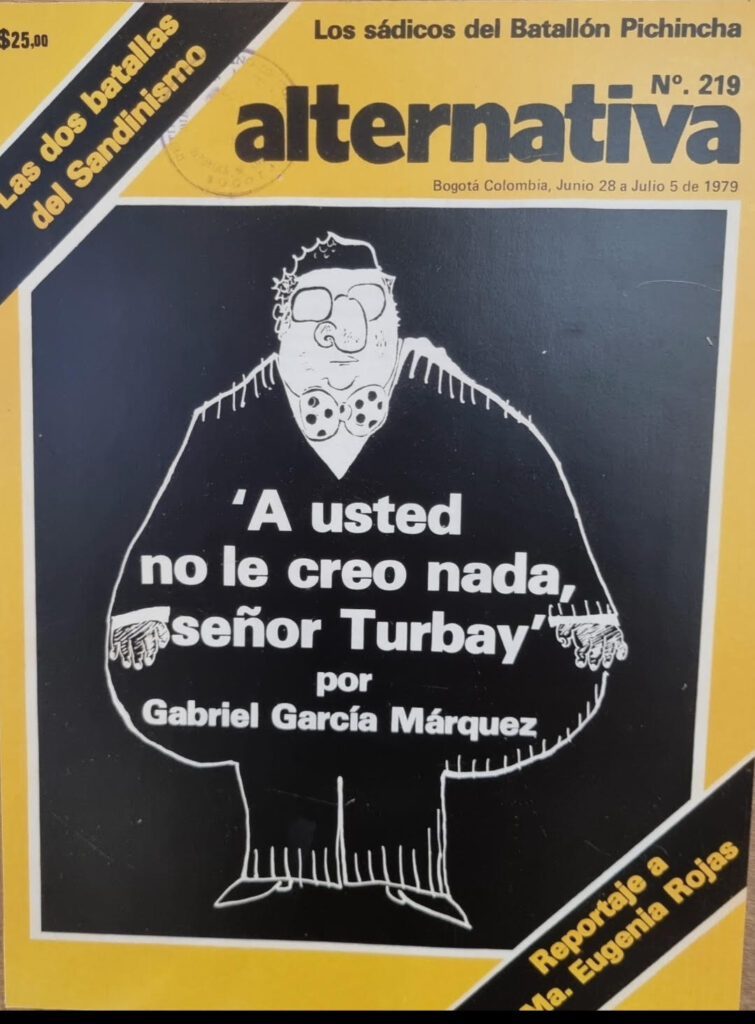 Vean que casualidad. En la exposición sobre Gabo, que permanecerá abierta en la Biblioteca Nacional hasta el 2 de agosto de 2025, hallé exhibidas la portada y las páginas interiores de la revista Alternativa (edición 219 de junio 28 de 1979), en donde el escritor se va pluma en ristre contra el expresidente: “A usted no le creo nada, señor Turbay”, le dice.