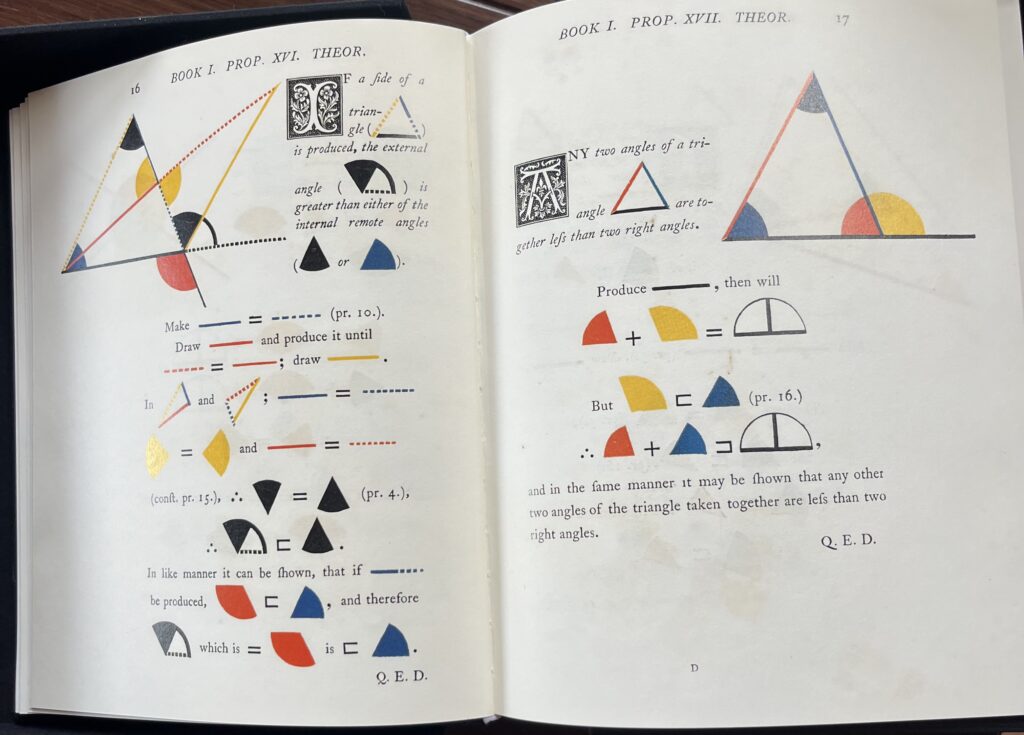 Después de Euclides y a lo largo del tiempo, desde la invención de la imprenta en 1450, han aparecido incontables ediciones del trabajo de Euclides, como esta bella publicación: