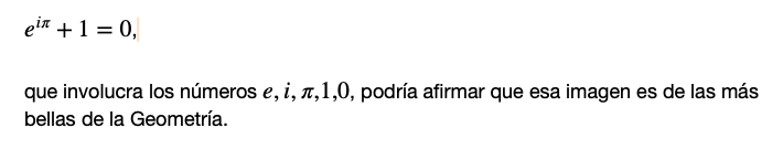 Así como se afirma que la ecuación más bella de las matemáticas es la Ecuación de Euler: