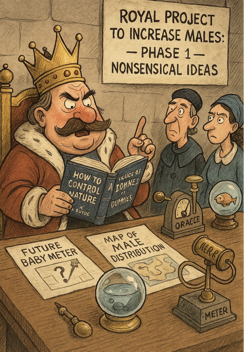 Por lo tanto en cada medición de nuevos nacimientos habrá tantos niños como niñas y la población se irá reduciendo sin que sea mayor la proporción de varones, como lo quería el rey.