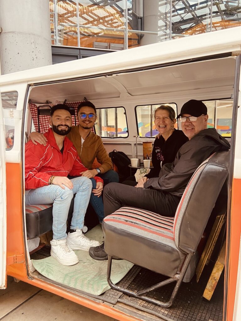 El corazón del proyecto es un objeto cargado de memoria: una Volkswagen Kombi 1981 naranja, conectado a una historia familiar y a una relación intima con el país de casi medio siglo. Este modelo hace parte de la histórica línea Type 2 de Volkswagen, concebida bajo la visión de Ben Pon, quien imaginó un vehículo versátil a partir de la plataforma del Beetle. Con el tiempo, la Kombi se transformó en un ícono global, símbolo de libertad, viaje y contracultura, profundamente ligado a los movimientos juveniles de los años sesenta y setenta.