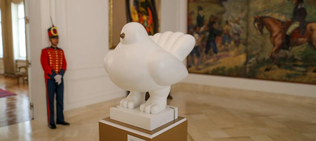 Los colombianos estamos emparentados al menos nominalmente con las palomas, pues en latín Columba es paloma y es la denominación científica de estas aves y Columbus es el masculino de Columba, que era el apellido de Colón, de donde proviene Colombia, así que el origen etimológico de los colombianos es la paloma. En el corazón de la patria, la plaza de Bolívar de Bogotá, la paloma es un animal emblemático, tanto como en Venecia o en Nueva York, en donde aterrizó la de Argote. En el arte colombiano, no podemos olvidar la Paloma de la Paz esculpida por el Maestro Fernando Botero, inquilina de honor en el Palacio de Nariño, sede presidencial colombiana.