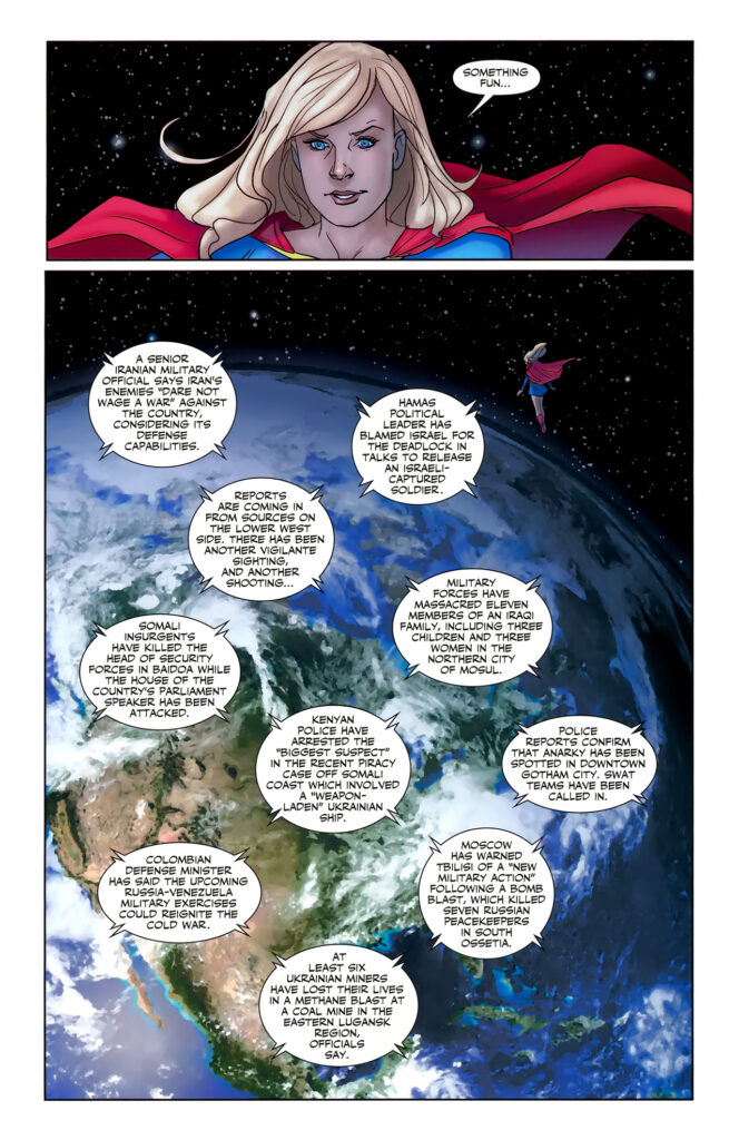 In the comic, Supergirl hears news from around the world, tuning in to a Colombian radio station, among other things.