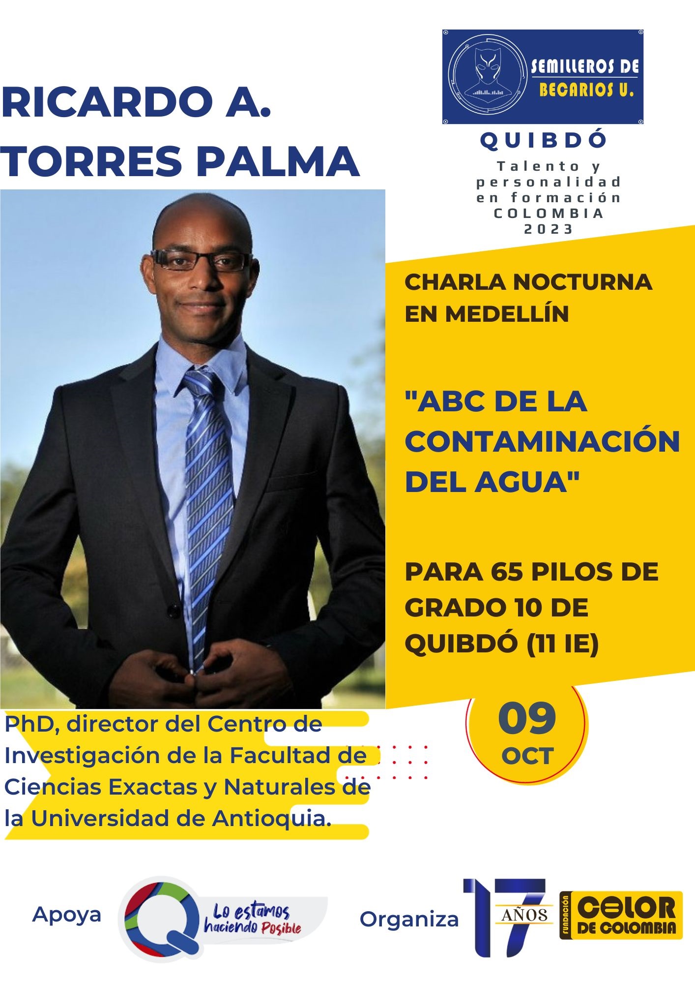 En la noche, recibirán en el hotel la visita del director del Centro de Investigación de la Facultad de Ciencias Exactas y Naturales de la Universidad de Antioquia, Ricardo Torres Palma, para una tertulia sobre «ABC de la contaminación del agua».