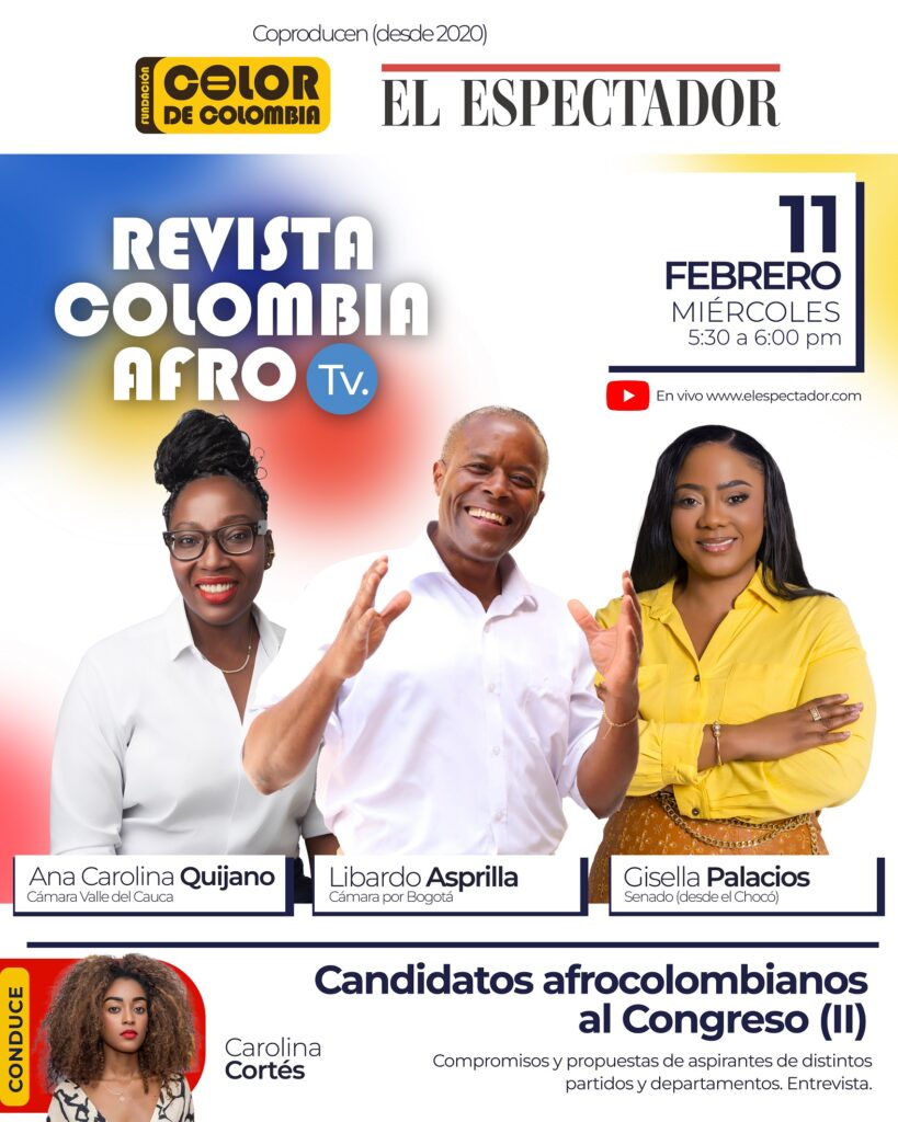 Segundo episodio del aporte de El Espectador y la Fundación Color de Colombia, con el streaming de Revista Colombia Afro TV, al conocimiento público de compromisos, propuestas y posiciones de candidatos afrocolombianos al Congreso, en distintas circunscripciones.