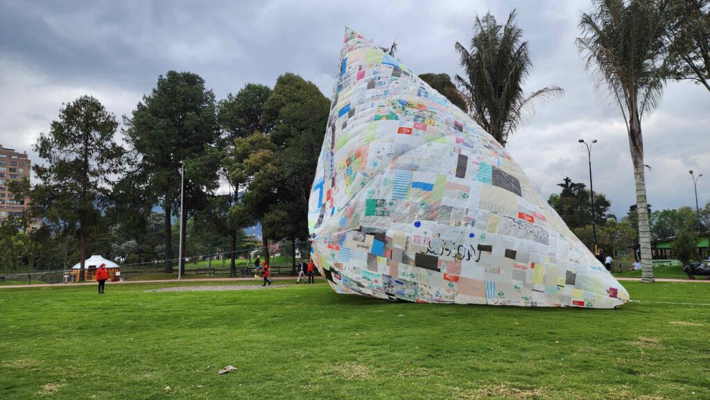 Museo Aerosolar El Museo Aerosolar es una construcción colectiva con bolsas recicladas. Se lee como cualquier cosa, pero al verlo adquiere otra dimensión. Para BOG25 se realizó con bolsas que fueron intervenidas por niños que reflexionaron sobre la felicidad. Ver esta obra / intervención/ comunidad tomar vida es muy lindo. Es mucho más profundo que ver bolsas recicladas pegadas entre sí.
