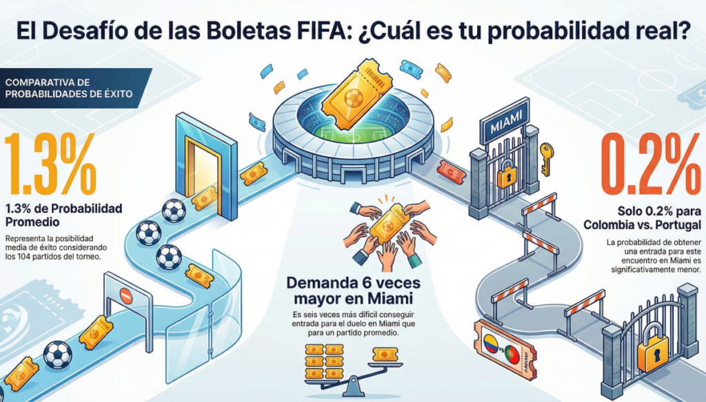 Si usted es colombiano y hace unas semanas diligenció el formulario de la FIFA para intentar comprar entradas a la Copa Mundo 2026, conviene empezar con una verdad incómoda, pero necesaria; no perdió por mala suerte. Perdió —o ganó— en una competencia estadística sin precedentes en la historia del deporte. Una rifa global, masiva, feroz, en la que la ilusión individual quedó reducida a un porcentaje microscópico.