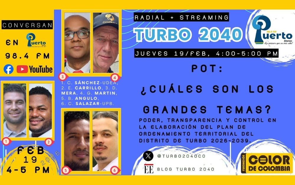 ¿Cuáles son los grandes temas de la actualización en curso del Plan de Ordenamiento Territorial (POT) del Distrito de Turbo?: es la pregunta que abordarán académicos y expertos de cara a la opinión pública.